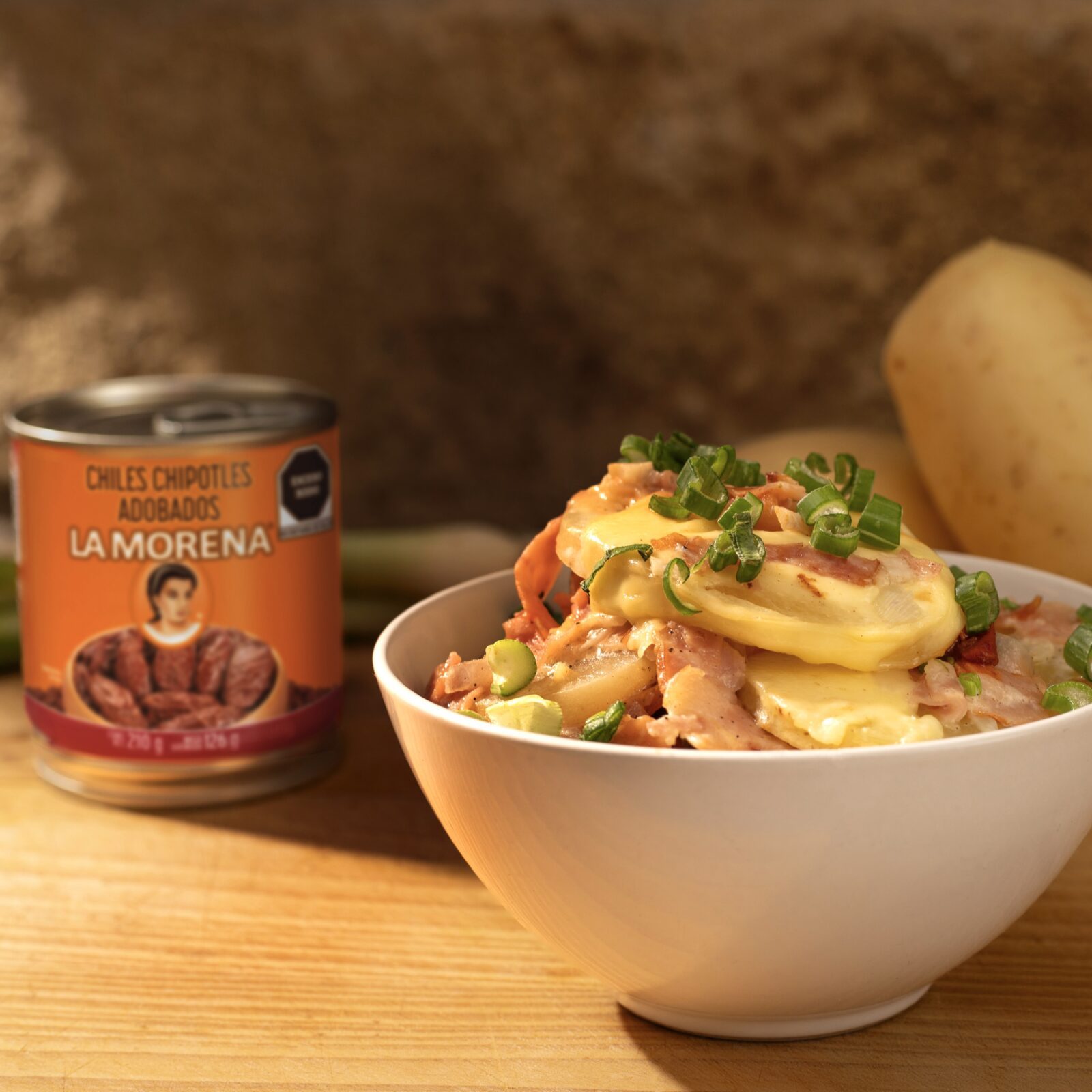 - Al momento de emplatar, espolvorear con cebollín picado y añadir una buena cantidad de Chiles Chipotles Adobados LA MORENA®.